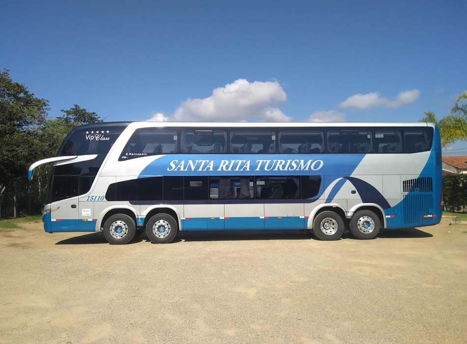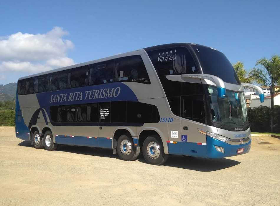 - 56 Lugares executivo, Ar-condicionado ( Piso Inferior: 12 Poltronas em tecido semi-leito, encosto de pernas, geladeira, 1 monitor, wc, sala de jogos, wifi. / Piso Superior: 44 Poltronas em tecido semi-leito, encosto de pernas, 2 geladeiras, 5 monitores, wifi.